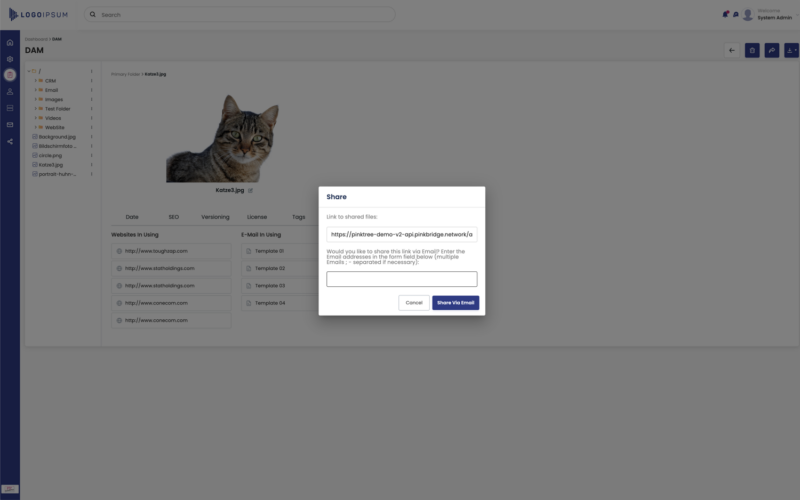 Stärke die Bekanntheit Deines Unternehmens, indem Du kanalübergreifend mit einheitlichen Brand-Assets auftrittst und erhöhe durch die Brand-Konsistenz die Akzeptanz Deiner User. Die zentrale Lagerung von digitalen Assets und die Verbindung des DAM mit den Kommunikationskanälen CMS und E-Mail-Tool erleichtert es Dir und Deinem Team zur jederzeit auf die Inhalte zugreifen und auf allen Kanälen implementieren zu können. Verteile schnell und unkompliziert per Drag-and-drop Inhalte wie Bilder, Videos oder PDFs auf Deinen Landingpages und neuen Newsletter.